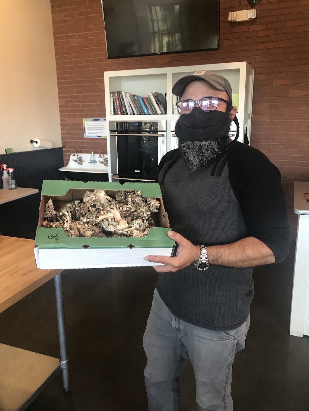 Fun fact… mushroom expert Hiram and Alyssa have been friends since they worked in restaurants together in 2009. We enjoy every visit with Hiram when he brings over his beautiful harvest.